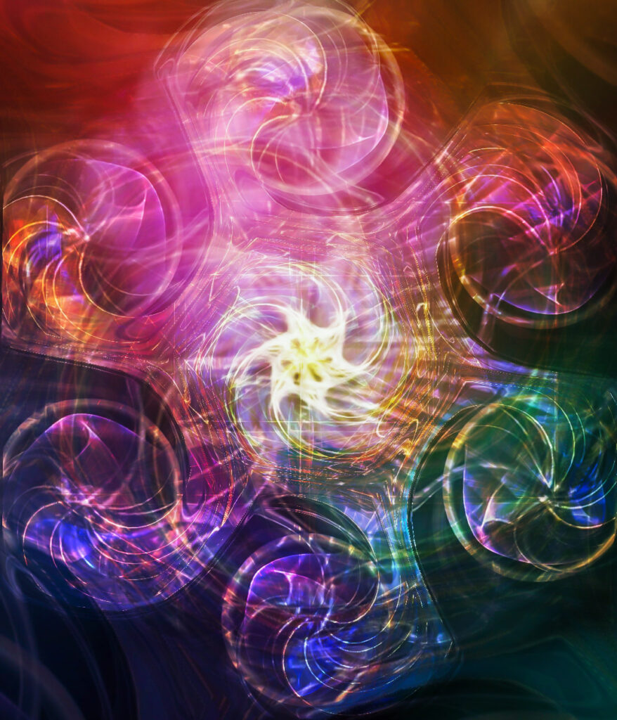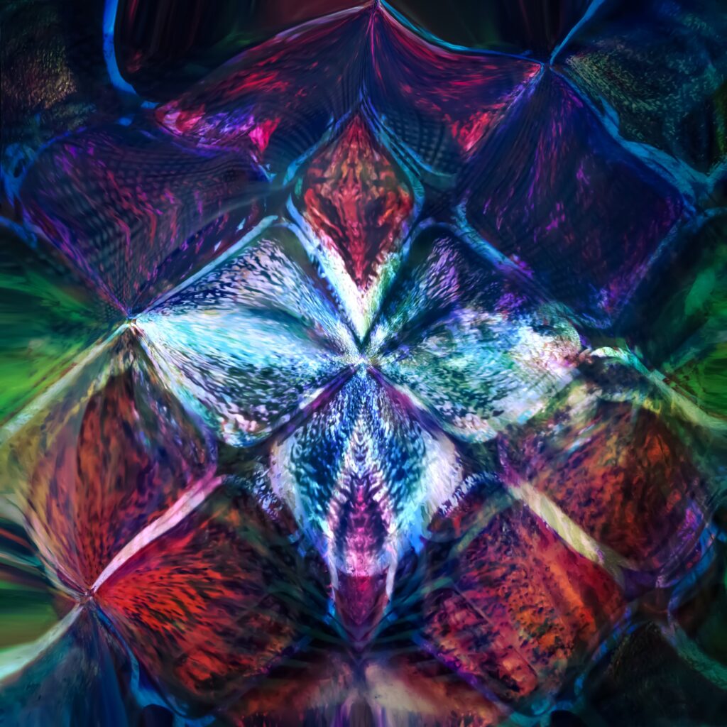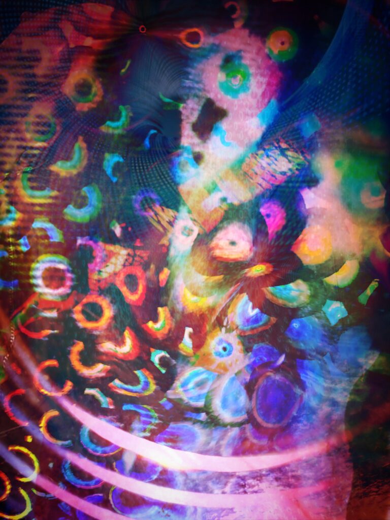 K terapeutických účelům používám také formy vizuálně percepční evokační terapie, kdy jednotlivé specifické obrazy rezonují s vědomými či podvědomými emočními vzorci a mentálními programy a volné asociace, které z tohoto procesu vznikají, se následně interpretují a dále se s nimi systematicky terapeuticky pracuje. K této činnosti používám zejména speciální vrstvené grafiky, jejichž autorem je František FF Brukner a z nichž některé naleznete na této stránce v Galerii.